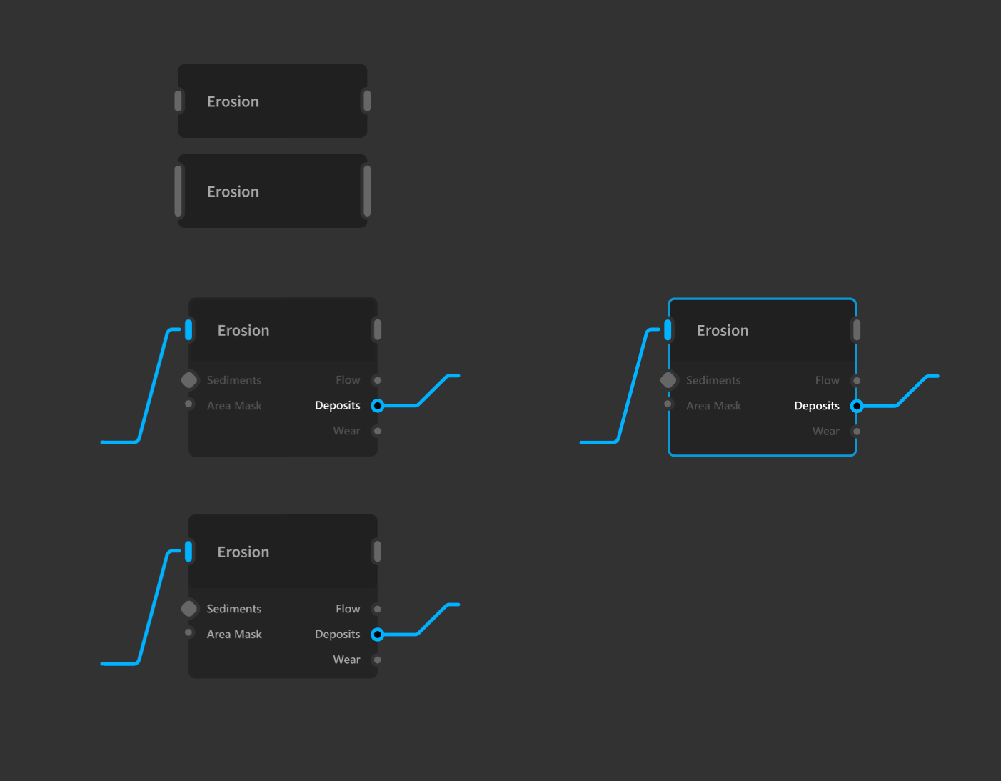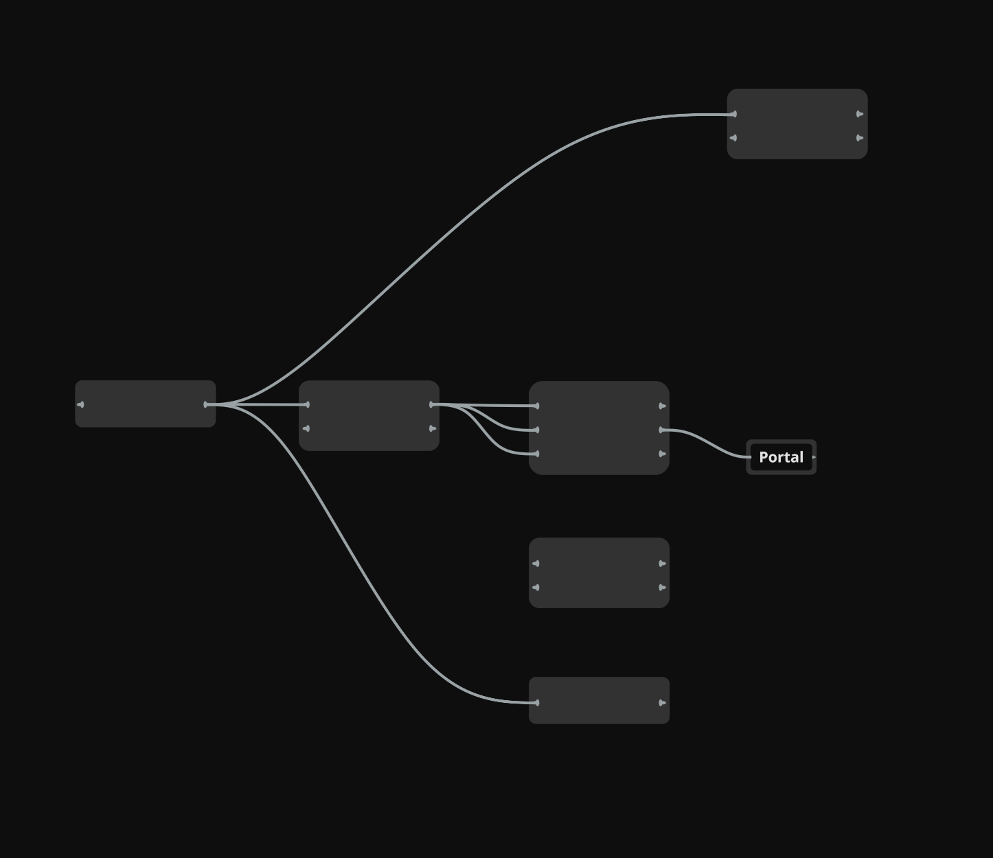 I want to suggest incorporating landforms/nature elements in UI. The current pointy curves can be replaced with S curve with a vine/rope like texture or maybe a river network as node connection? Input/Output ports could be indicated by a rock/branch/mountain. Portal can be made as a small leaf shaped node.