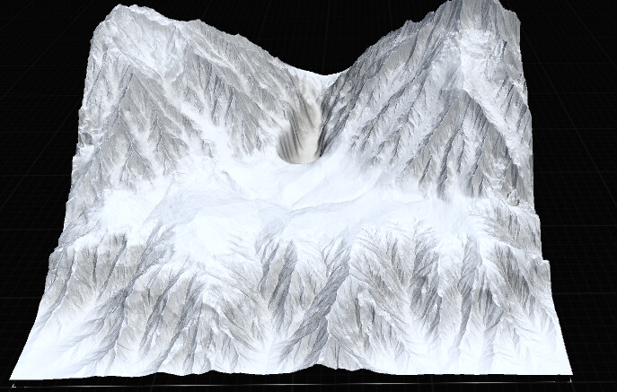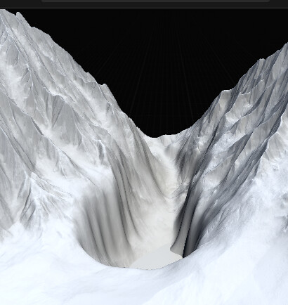 I wanted to make a chasm with cliffs on its edges that is inbetween two peaks of a mountain. I managed to make the two peaks fine and get the rough shape of the chasm but it looks too smooth. I tried adding erosion but it loses its shape. I want it to be rocky and steep but also be flat enough so that I can add a mountainside road on the cliff. Any help?