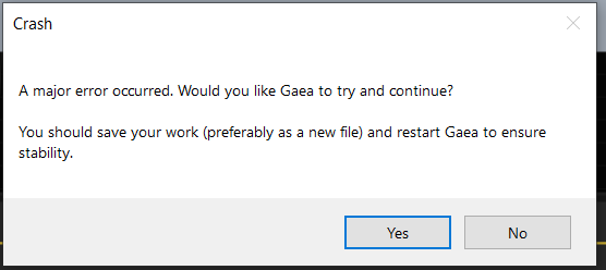 Exactly as the title says. I open a clean new file, do Ctrl-S or manually click the save icon and Gaea opens up the major crash dialogue box.